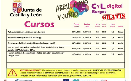 Para más información e inscripciones, selecciona Burgos el apartado de formación presencial en la web de CyL Digital que encontrarás en el siguiente enlace: "Formación presencial en la web de CyL Digital"