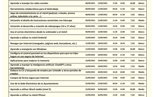 Hay 28 cursos para elegir y son presenciales, gratuitos, y con una duración de entre 7'5 y 10 horas.