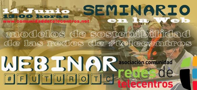 El próximo día 14 de Junio, de 13:00 h a 14:30 horas, vamos a celebrar un seminario en la web sobre los "modelos de sostenibilidad de las redes de Telecentros", continuando así con el debate que sobre este tema ya se inició en el IV FORO MUNDIAL DE TELECENTROS #spark.